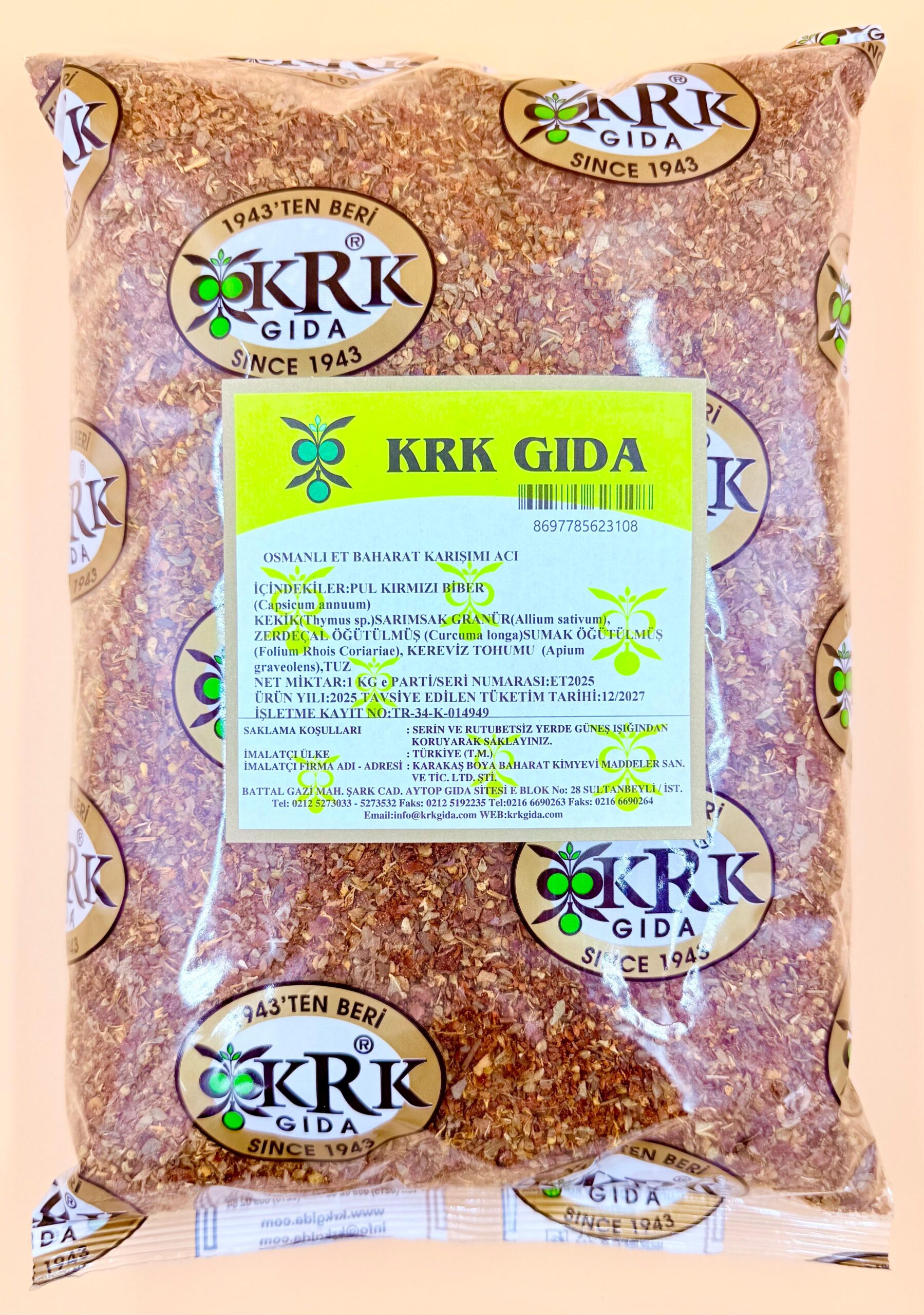 İçindekiler: PUL KIRMIZI BİBER ACI (CAPSİCUM ANNUUM), KEKİK (THYMUS SP.), SARIMSAK GRANÜL (ALLİUM SATİVUM), ZERDEÇAL ÖĞÜTÜLMÜŞ ( CURCUMA LONGA), SUMAK ÖĞÜTÜLMÜŞ (FOLİUM RHOİS CORİARİAE), KEREVİZ TOHUMU (APİUM GRAVEOLENS), TUZ
